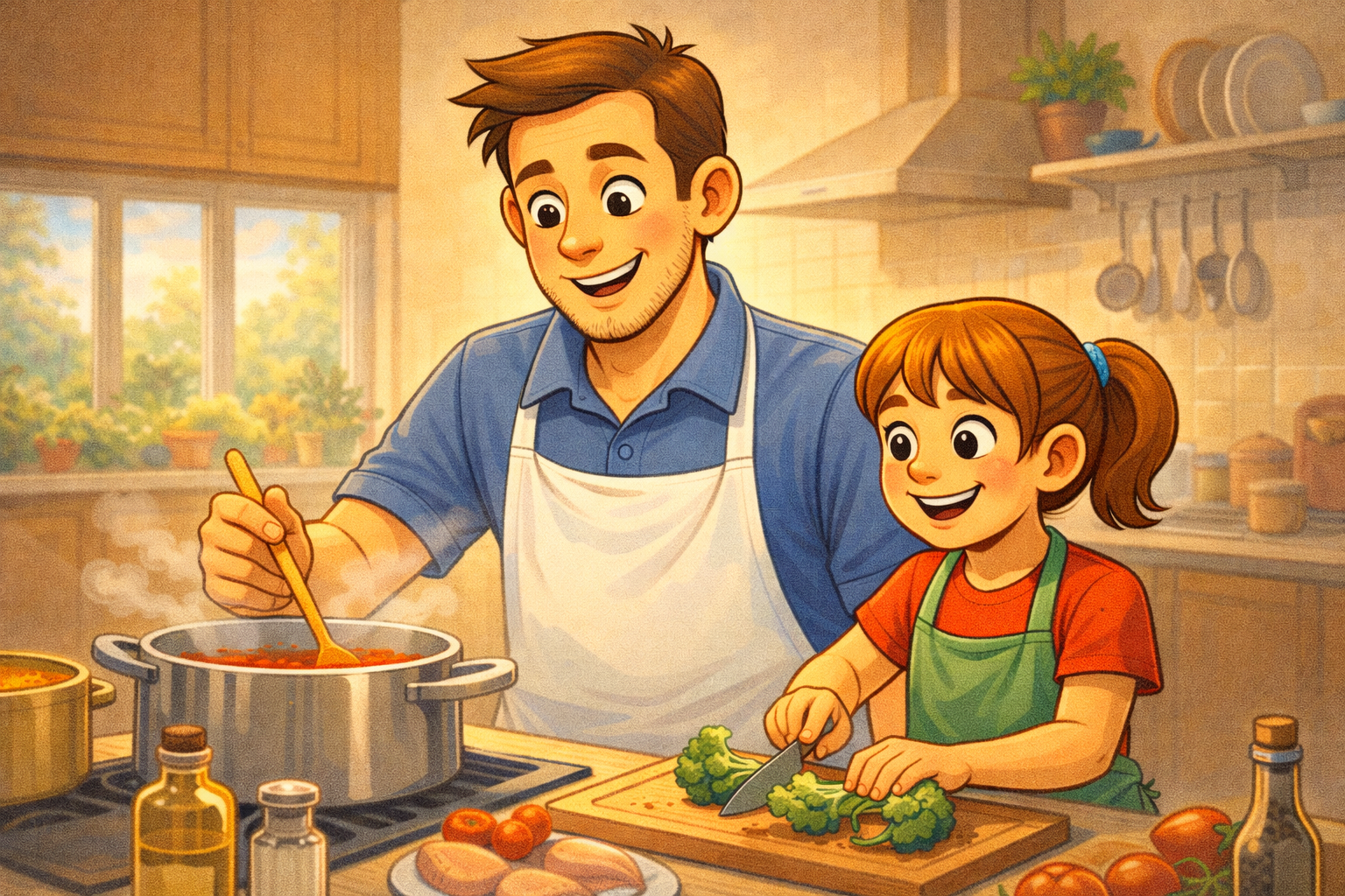Let them choose the meal. Give them a real job in the kitchen, not just standing there watching. Let them stir, let them chop (age-appropriate, obviously), let them season the food. Will it be messy? Probably. Will dinner take twice as long? Almost definitely. But something happens when you work on a meal together and then sit down and eat what you built as a team. Your kid feels capable. They feel included. And you get a moment where you're side by side doing something together instead of just existing in the same house.